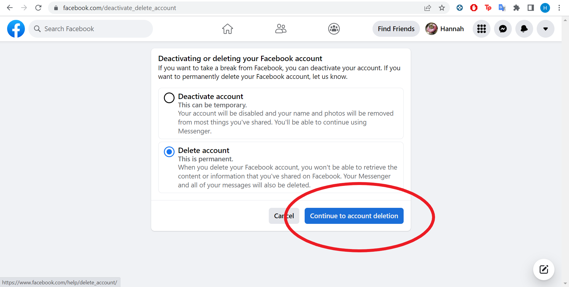 Jos poistat koko Facebook-tilin, myös Messenger-tili yleensä katoaa sen mukana.
